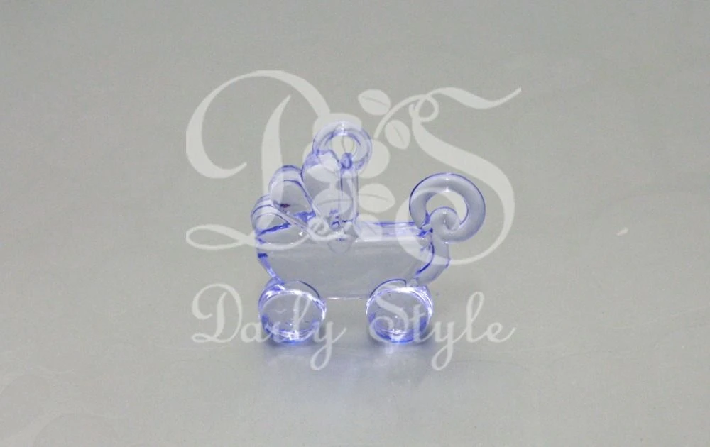 Mini acryllen kinderwagen in het blauw. De afmetingen van deze acryllen kinderwagen zijn 3x3cm met een dikte van 0,5cm. De acryllen kinderwagens zijn per 12 verpakt.