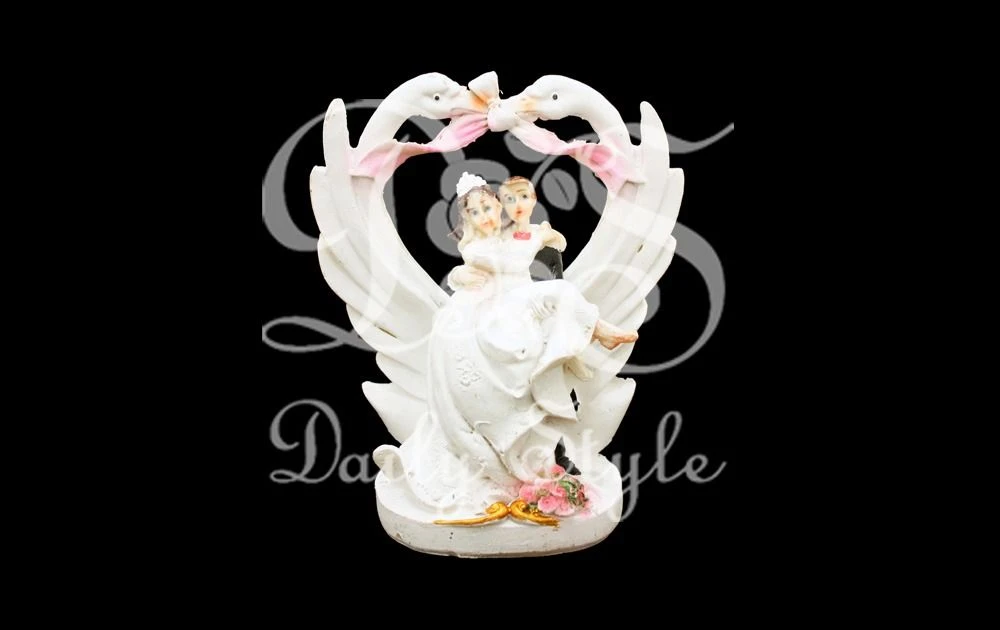 Romantisch bruidspaartje voor een door zwanen gevormd hart. Afmeting: 11 x 5 x 13,5 cm (LxBxH)