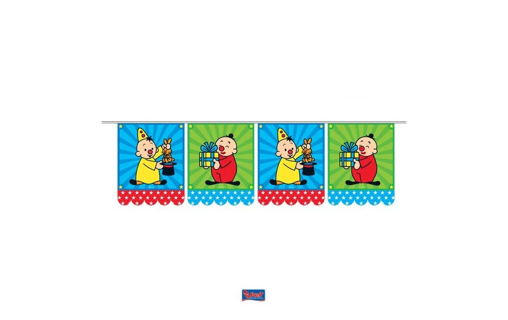 Vlaggenlijn met Bumba. De vlaggetjes hebben een lengte van 22cm en zijn aan beide kanten geprint. De vlaggenlijn is 10m lang.