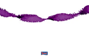 Crepe guirlande slinger in het paars. De slinger is 24 meter lang en is gemaakt van een brandvertragende crepe, dus ook geschikt voor in de horeca.Â