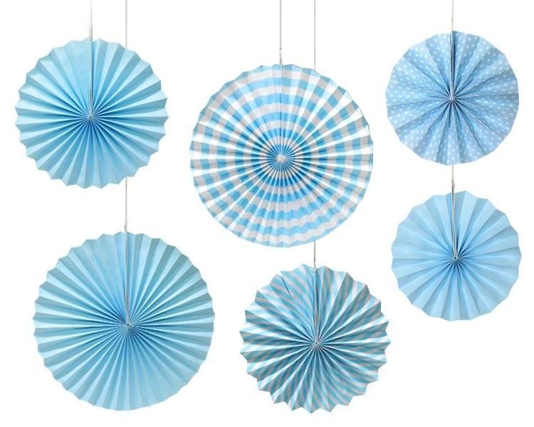 Leuke waaier decoratie 6-delig met verschillende groottes, verkrijgbaar in het blauw, roze, mix en zwart. De set bestaat uit het volgende: