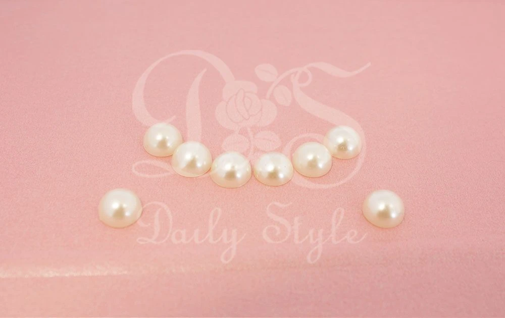 Plastic versierinkje in de vorm van een halve parel. De parel heeft een dia van 1cm en is ca 0,5cm dik. De parels zijn per 100 stuks verpakt.