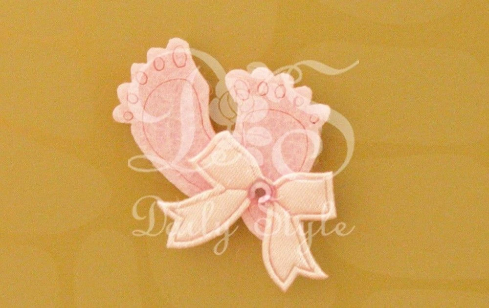 Decoratie vilt in de vorm van voetjes in het roze. Het embleem heeft een afmeting van 3 x 3 cm. Eén verpakking bevat 12 voetjes.Â