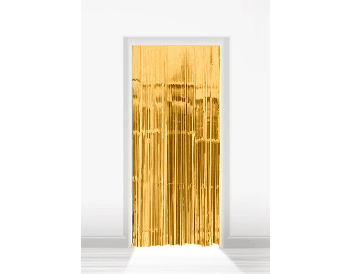 Matte gouden deurgordijn van folie. Perfect als een backdrop of feestelijke entree op elk feestje! De deurgordijn is 1 meter breed en 2 meter hoog.