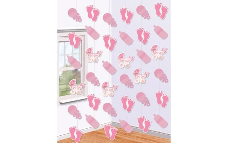 String decoratie ‘Baby Girl’ in het roze. De decoratie is verpakt per 6 strings. Elke string is circa 213 cm lang, wat een totaal maakt van 12,8 meter aan decoratie.Â