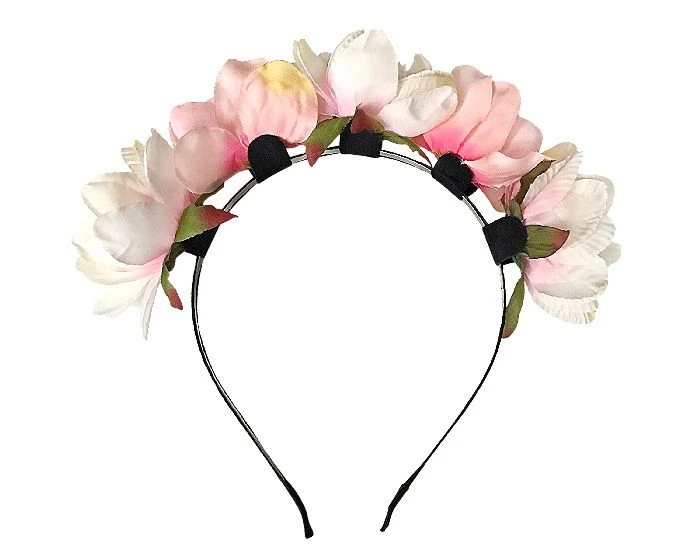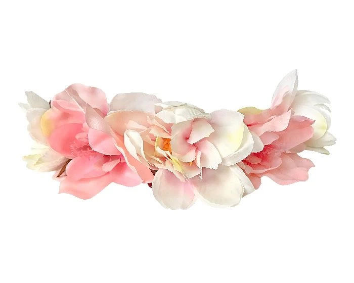Diadeem met 5 kunstbloemen in roze en witte kleur.Â