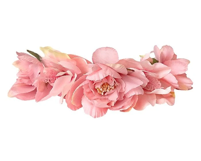 Diadeem met 5 kunstbloemen in roze kleur.Â
