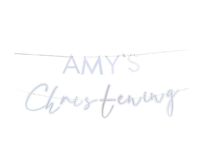 Voeg een persoonlijk tintje toe aan dit speciale doopfeest met onze aanpasbare doopslinger van Ginger Ray. Deze stijlvolle slinger is zowel aanpasbaar als milieuvriendelijk en is een must-have accessoire en zal er prachtig uitzien op uw locatie. Elke verpakking bevat 1 x doopslinger van 1,5 m op 2 strengen inclusief doopletters en 17 letter vellen om mee te personaliseren.