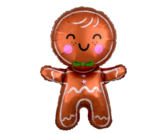 Leuke folieballon van een vrolijke gingerbread man. De ballon is 55x78cm groot en kan met lucht of helium worden gevuld.