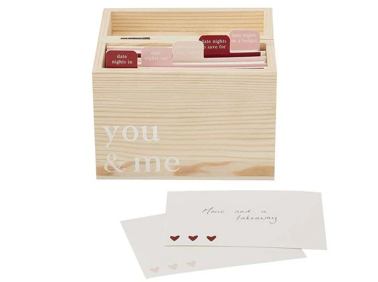 Wil je een romantische avond plannen met je partner? Dan is deze houten Date Night Box van Ginger Ray iets voor jullie! Schrijf op de kaarten leuke ideeën voor een romantische avond en wijs ze toe aan een van de date categorieën. Deel ze vervolgens met elkaar. De Date Night Box is 13,5×11,5cm groot en wordt geleverd met maar liefst 75 kaarten.