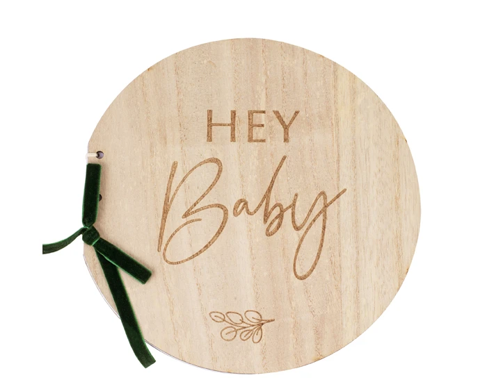 Maak blijvende herinneringen door verhalen, foto’s en wensen in dit mooie houten boek van Ginger Ray te plaatsen. Op het boek is de tekst ‘Hey baby’ en een takje gegrafeerd. Tip! Je kunt het boek naast gastenboek ook als plakboek of fotoalbum gebruiken. Naast een babyshower is het boek ook geschikt voor een doop. Het ronde Hey Baby gastenboek bevat 32 pagina’s, is afgewerkt met groen fluweel lint en is gender neutraal.