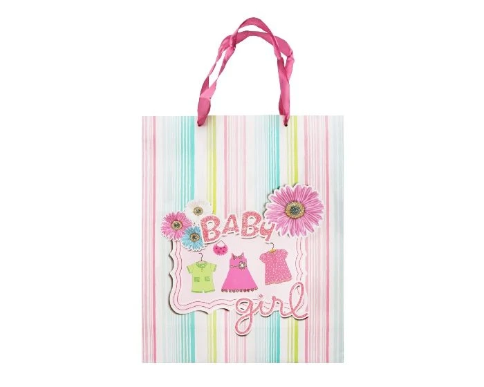Kartonnen Baby Girl cadeautas in het roze. Leuk voor een babyshower of geboorte. De tas heeft een afmeting van 26 x 32 x 10 cm.Â
