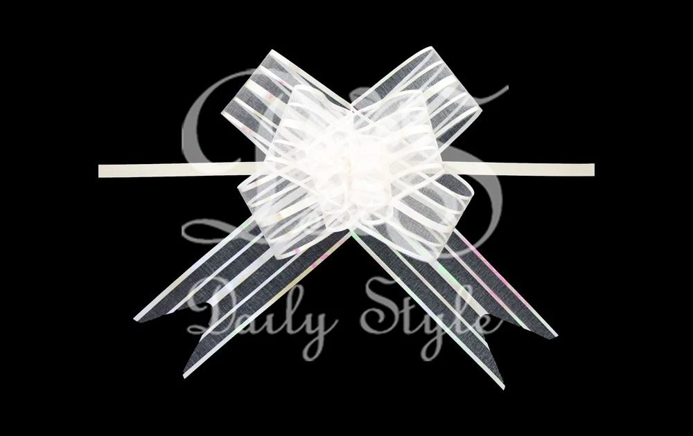 Grote maat treklint in half-transparant wit, voor het versieren van je bedankje of gewoon op een cadeau. Het lint is 49 x 900 mm groot in platte vorm. Verpakt per 10 stuks.