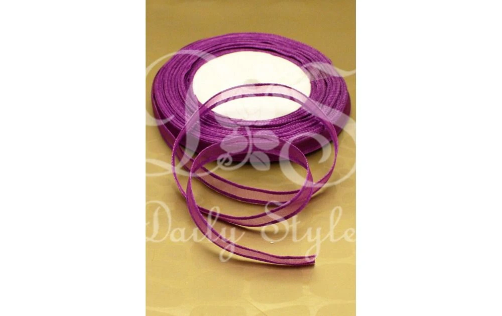 Organzalint van 1cm met een satijnen rand in het paars. Op één rol zit 22,8m lint.