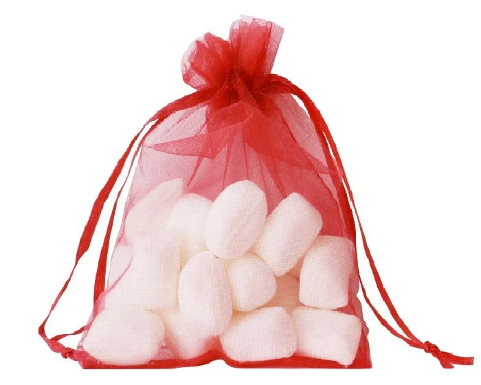 Organzazakjes in de kleur rood. Het zakje heeft een afmeting van 13 x 19 cm. Eén verpakking bevat 12 organzazakjes.