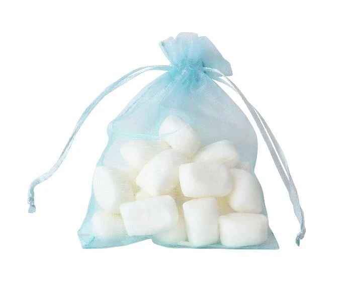 Organzazakjes in de kleur blauw. Het zakje heeft een afmeting van 10 x 13 cm. Eén verpakking bevat 12 organzazakjes.