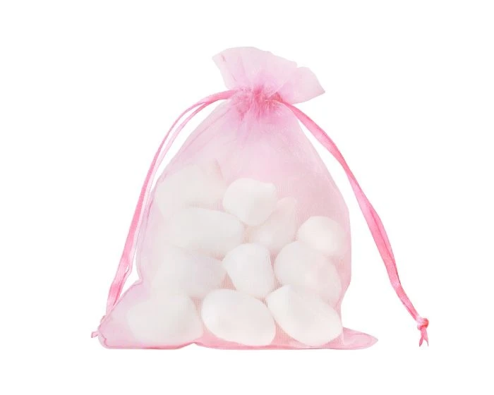 Organzazakjes in de kleur roze. Het zakje heeft een afmeting van 10 x 13 cm. Eén verpakking bevat 12 organzazakjes.