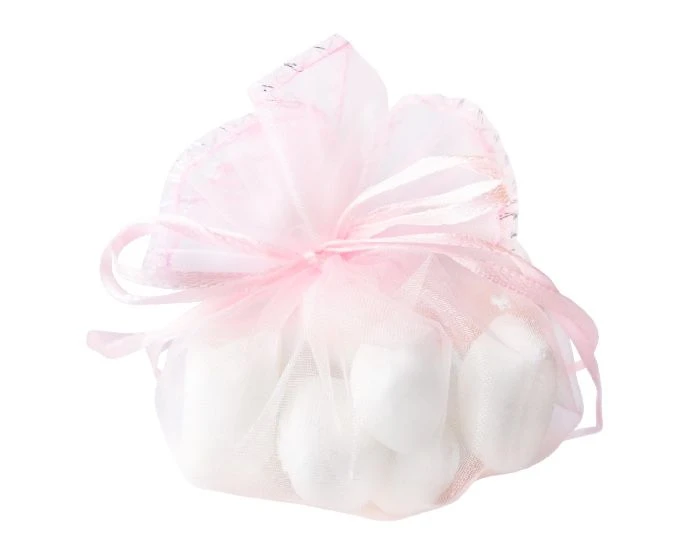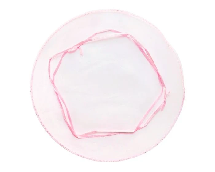 Ronde organzazak in het roze. Deze ronde organzazak met lint heeft een diameter van 24 cm. Door aan het lint te trekken wordt het platte stuk stof een mooi bol zakje. Per 12 verpakt