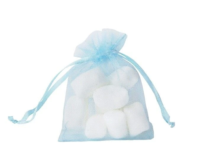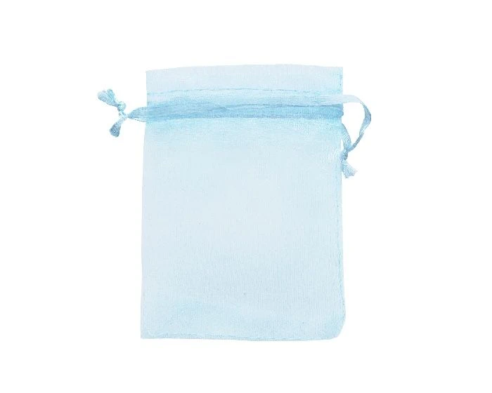 Kleine organzazak in de kleur blauw. Het zakje heeft een afmeting van 7 x 9 cm. Eén verpakking bevat 12 organzazakjes.