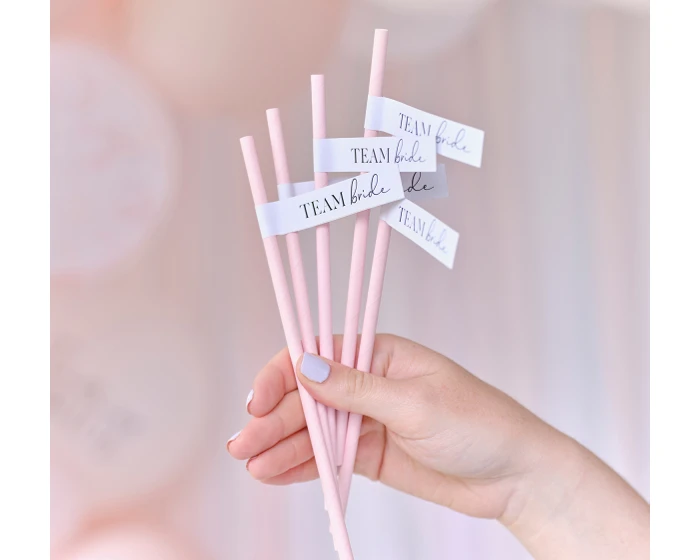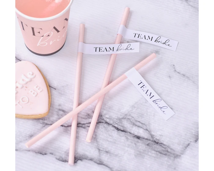 Deze prachtige papieren rietjes van Ginger Ray zijn het perfecte accessoire om cocktails weg te drinken tijdens een vrijgezellenfeest! Deze roze en witte rietjes zullen er prachtig uitzien als onderdeel van je vrijgezellenfeest en zullen zeker geliefd zijn bij het hele Bride Team! Elke verpakking bevat 16 vrijgezellen rietjes van 19 cm lang met ‘Team Bride’-vlaggen eraan vastgemaakt.