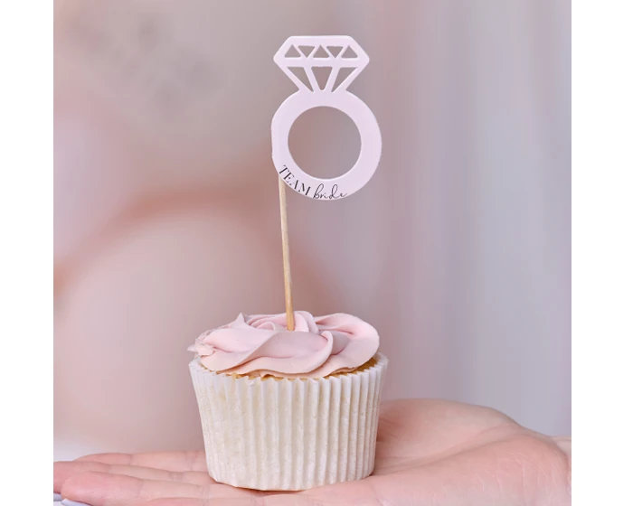 Geef jouw cupcakes een finishing touch met deze prachtige ring cupcake toppers met de tekst ’team bride’ van Ginger Ray. Perfect voor een vrijgezellenfeest! Elke verpakking bevat 12 roze en witte prikkers van 5 (h) x 4 (b) cm.Â