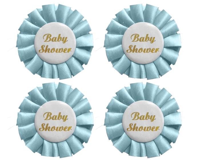 Leuke rozetten met de tekst ‘Babyshower’ in het goud en een blauwe stoffen rand. Leuk om uit te delen aan alle gasten van de babyshower. Met de spelt kan je de rozet gemakkelijk vastzetten. Eén verpakking bevat 4 rozetjes.Â