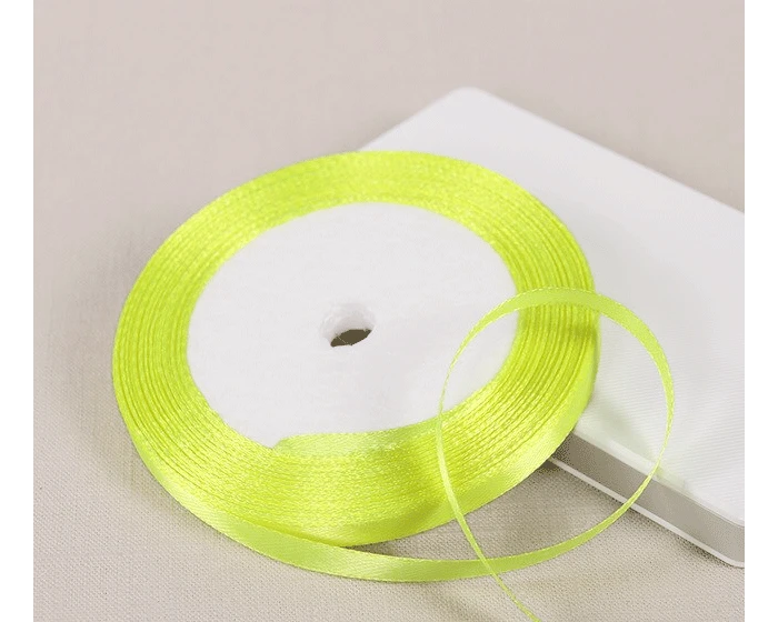 Satijnlint in de kleur neon geel van 6mm breed op een rol van 22,8m.