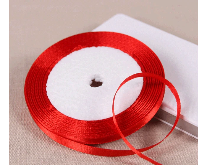 Satijnlint in de kleur rood van 6mm breed op een rol van 22,8m.