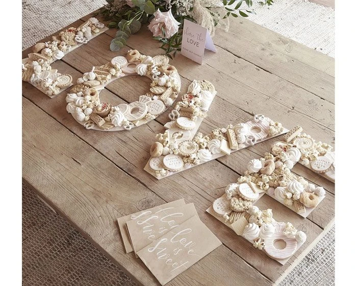 Maak indruk op je gasten met deze prachtige LOVE serveerplank waarop je hapjes en gerechten kunt presenteren. De serveerplank is niet alleen geschikt voor op een bruiloft maar ook op verjaardagsfeestjes en voor valentijnsdag! De set bestaat uit:Â