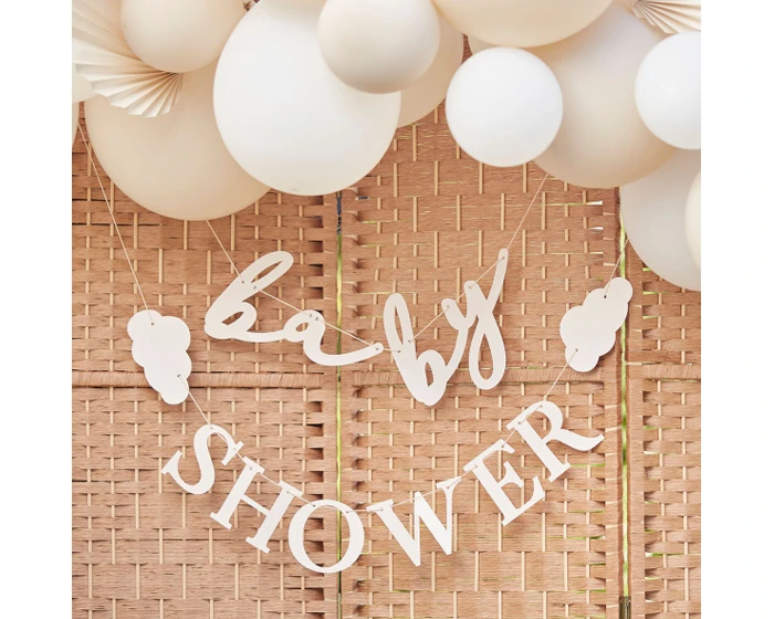 Breng een stijlvolle sfeer aan je babyshower decor met deze prachtige wolken slinger van Ginger Ray. Dit is een verfijnde en eigentijdse slinger in taupe en crème, de perfecte slinger om een ​​neutrale babyshower te versieren.