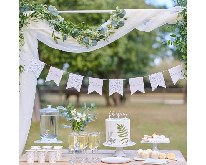 Drapeer deze prachtige botanische doopslinger van Ginger Ray op de dooplocatie voor de perfecte opstelling. Met een luxe witte en groene botanische en ‘doop’-printcombinatie, zal deze vlaggenlijnbundel er fantastisch uitzien op de hele locatie. Elke verpakking bevat 1 x doopslinger van 2 m lang inclusief 12 vlaggen met prachtige botanische en doopprints.