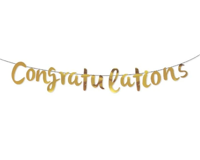 Vier feest met deze gouden ‘congratulations’ slinger van papier. De slinger is ongeveer 1,5 meter lang.