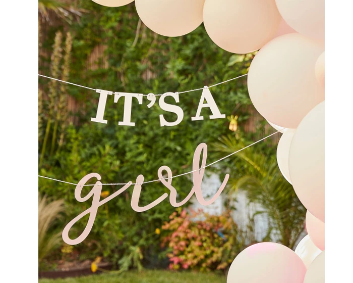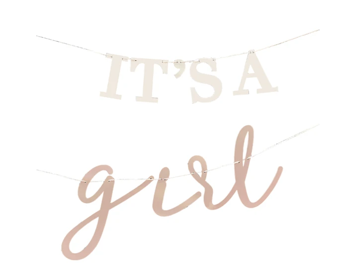 Versier je babyshower of gender reveal feestje met deze mooie ‘It’s A Girl’ slinger van Ginger Ray. Elke verpakking bevat 1 x ‘It’s A Girl’ slinger van 2 x 1,5 meter.Â