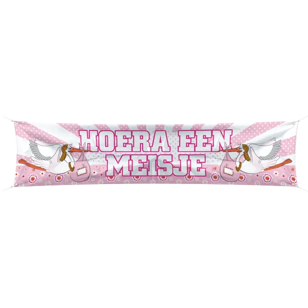 Laat het iedereen weten met deze leuke straatbanner. Geschikt voor aan het tuinhek of balkon bijvoorbeeld. De vlag is 40x180cm groot en in alle hoeken een ring om het makkelijk vast te maken.