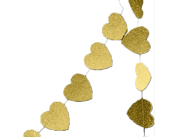 Leuke string decoratie met hartjes in glitter goud. De slinger bestaat uit 16 hartjes met elk hartje van ongeveer 9 cm.Â