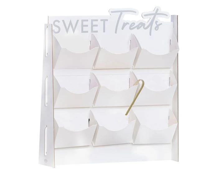 Maak indruk op je gasten met deze fantastische traktatiestandaard, je feesttafel heeft er nog nooit zo goed uitgezien! Deze zoete tafelstandaard is 47,4cm (H) x 42,1cm (B) en wordt compleet geleverd met 9 traktatieplanken, 10 traktatiezakjes en 1 tang.