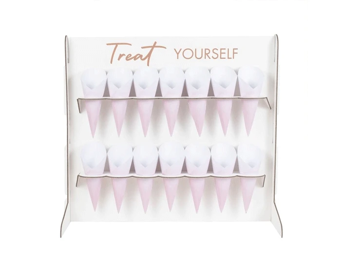 Vul de treat yourself stand met je favorietje snoepjes. De treat stand bevat 24 zakjes die je kunt vullen. Plaats de zakjes in de muur en genieten maar! Leuk alternatief op een taart of cupcakes.