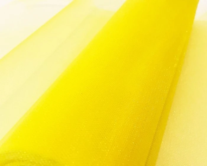 Gele tule op rol. Voor het maken van mooie strikken en/of versieren van bijvoorbeeld stoelen en tafels. Op een rol zit 18 meter tule en is 30 cm breed. Let op: daadwerkelijke kleur kan een beetje afwijken van de foto!
